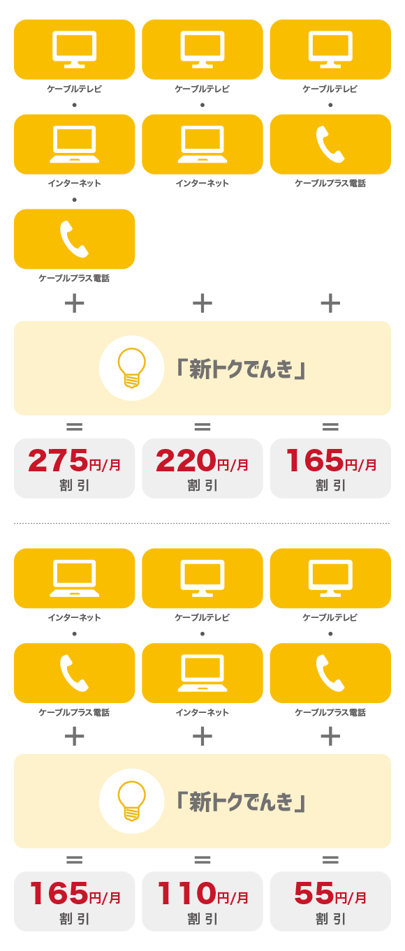 ケーブルテレビの他のサービスとの同時利用で、セット割引がつきます。