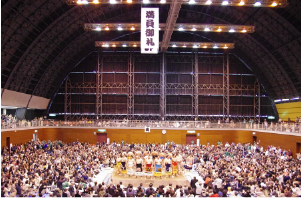 入間市役所、入間青年会議所、地域団体、シニア世代の団体、そして市民…。まちの力がひとつになり、初の入間場所は見事に成功しました。若貴ブームも追い風となり、チケットは完売。