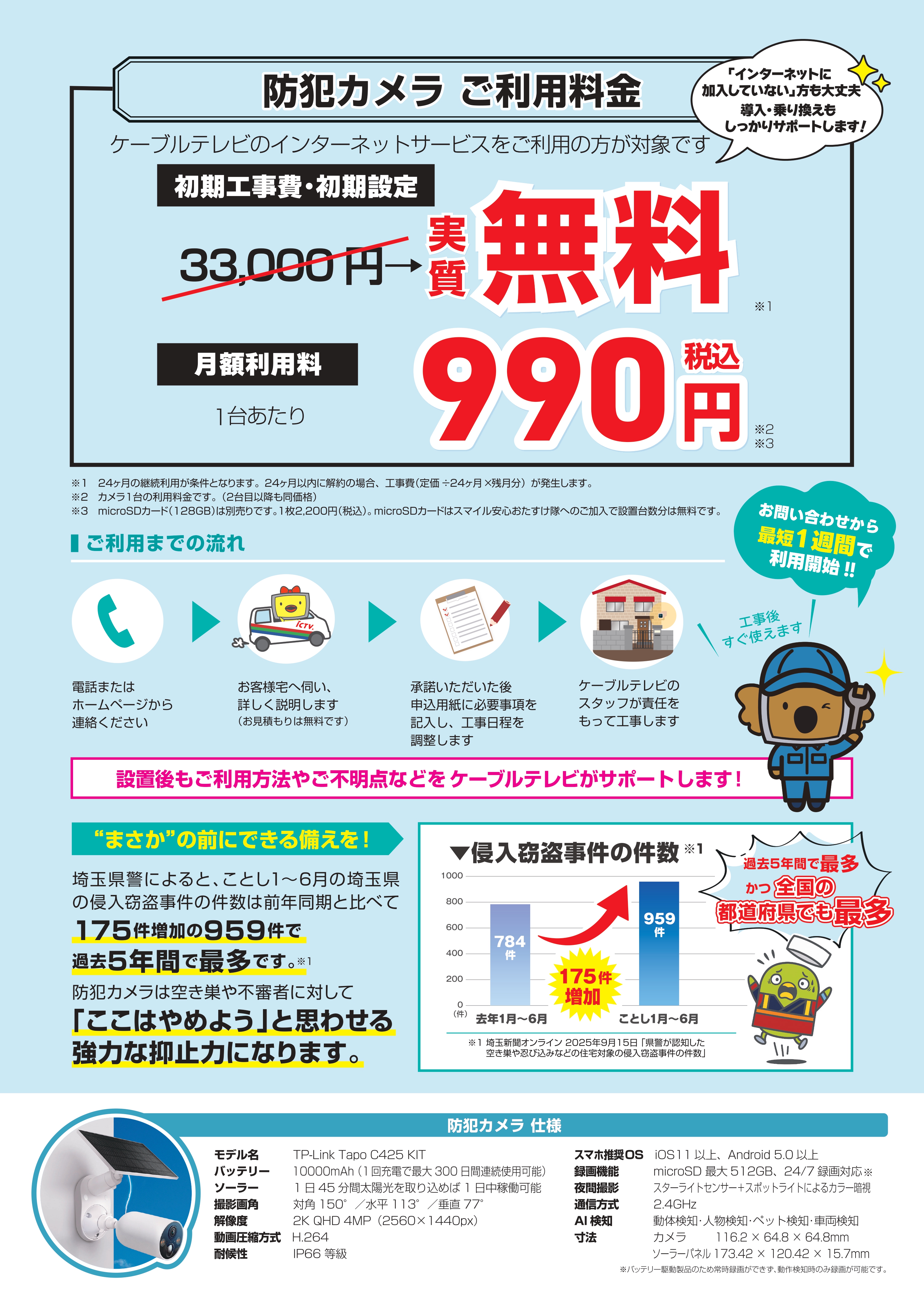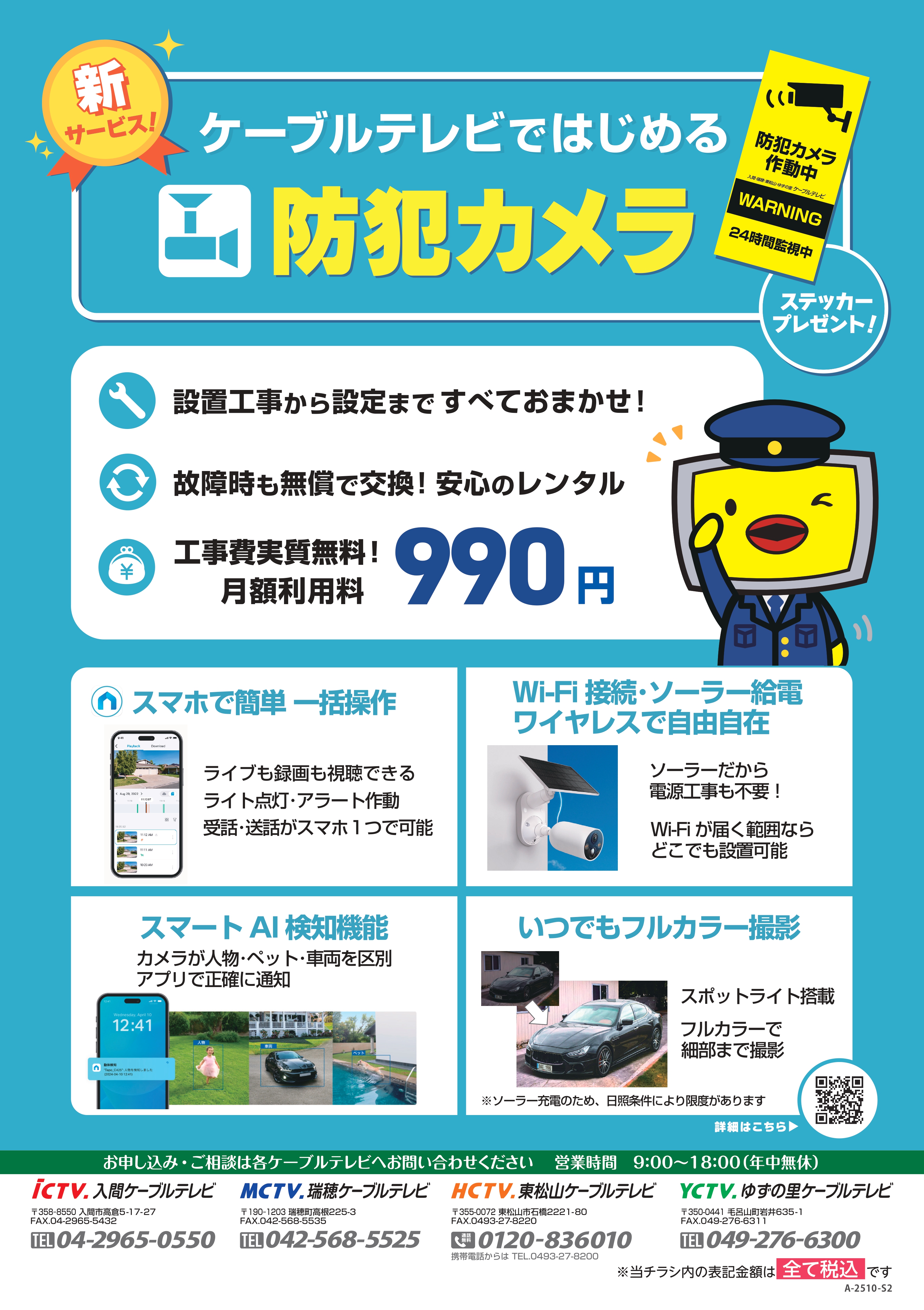 【10/11新聞折込チラシ】ケーブルテレビではじめる防犯カメラ