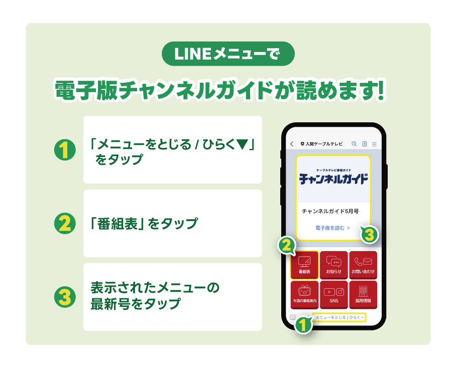 電子版チャンネルガイドを読むならLINEが便利です!3ステップでいつでもご利用できます。
