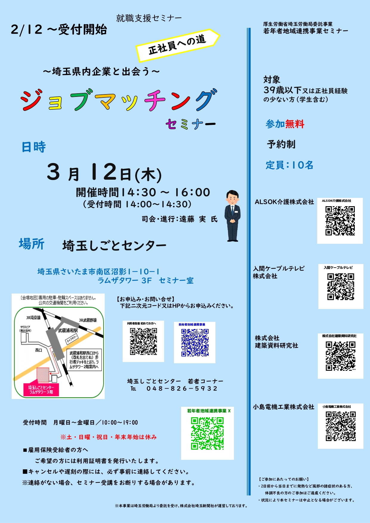 3月12日(木)ジョブマッチングセミナー ~埼玉県内企業と出会う~に参加します!