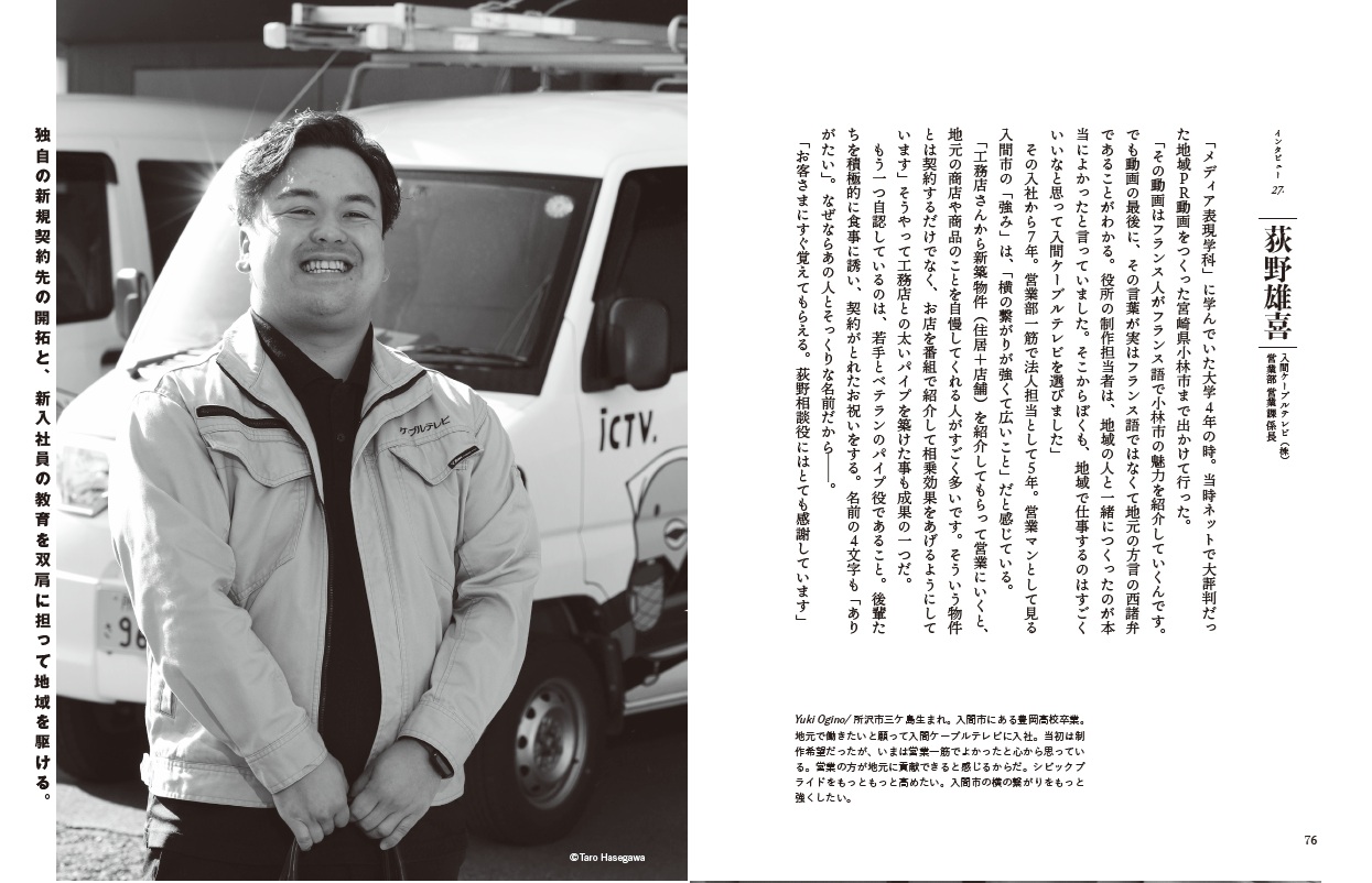 「その動画はフランス人がフランス語で小林市の魅力を紹介していくんです。でも動画の最後に、その言葉が実はフランス語ではなくて地元の方言の西諸弁であることがわかる。役所の制作担当者は、地域の人と一緒につくったのが本当によかったと言っていました。そこからぼくも、地域で仕事するのはすごくいいなと思って入間ケーブルテレビを選びました」