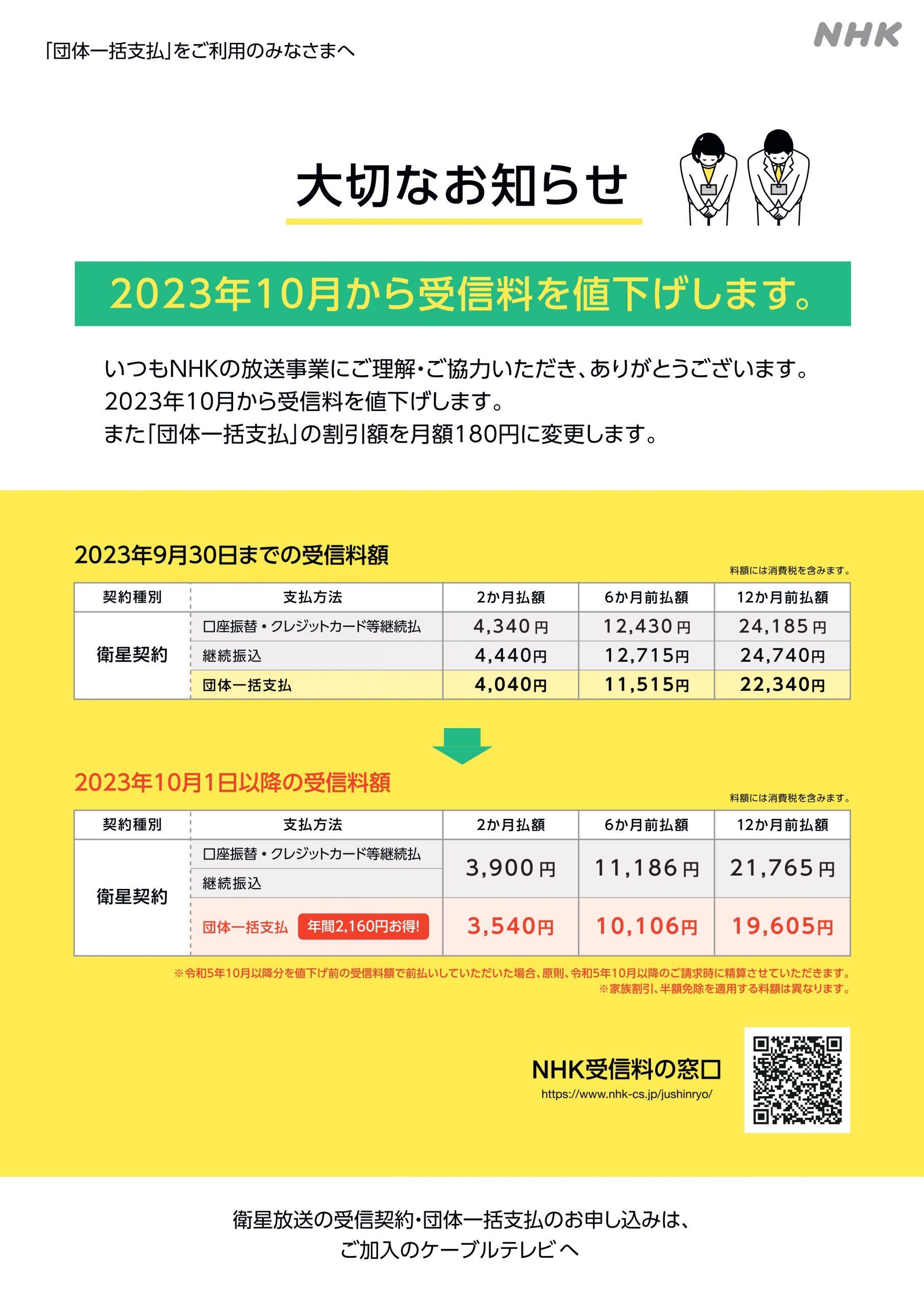 【NHK】受信料値下げに関するお知らせ