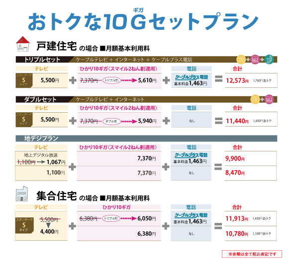 月額5,610円(税込) テレビSタイプと電話とセットでご契約の場合 |