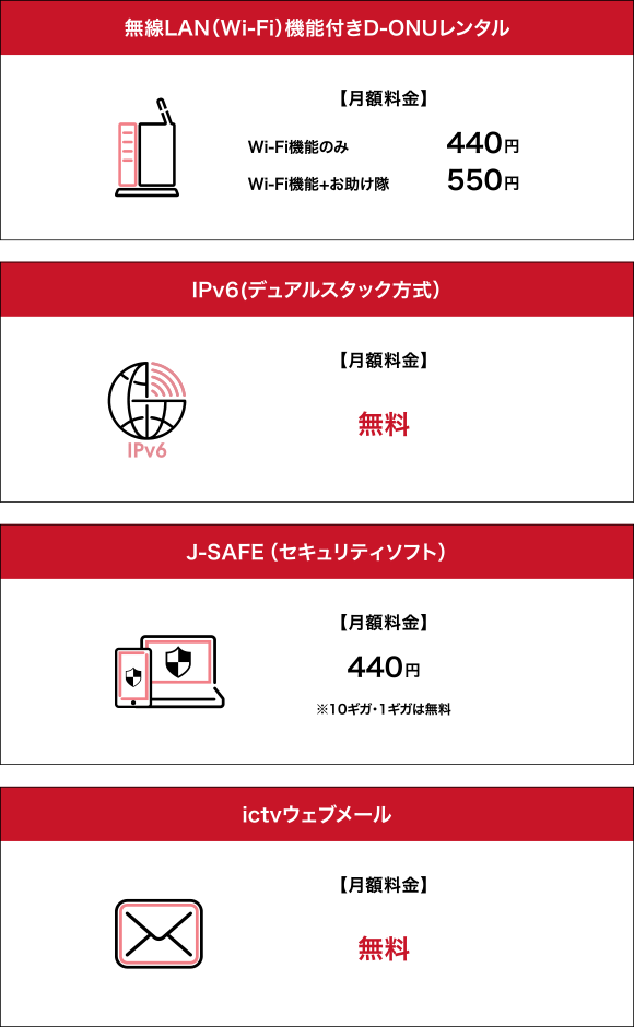 ※ 通信速度を変更する場合、手数料2,200円がかかります。また速度変更時に機器変更が伴う場合、機器交換費5,500円がかかります。