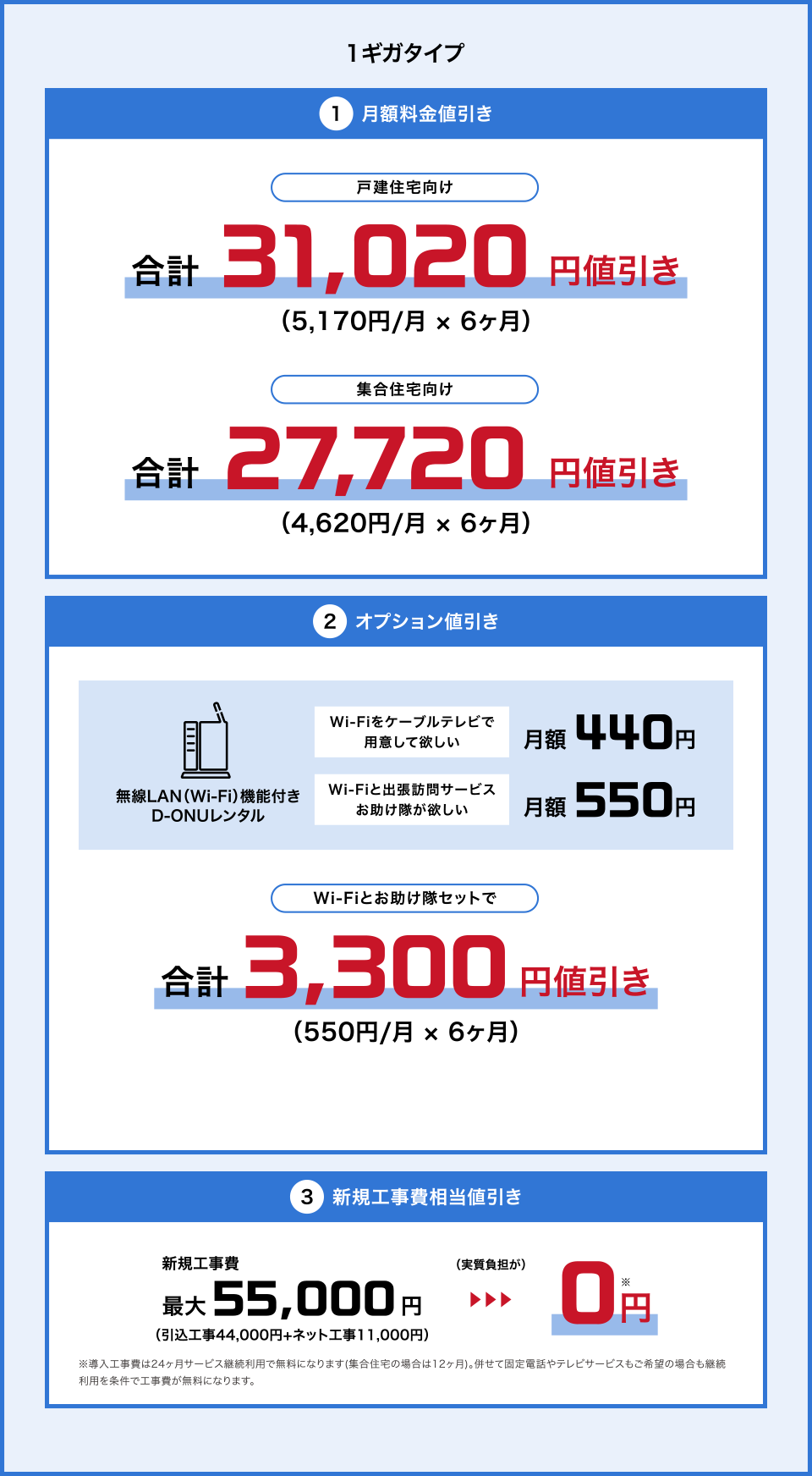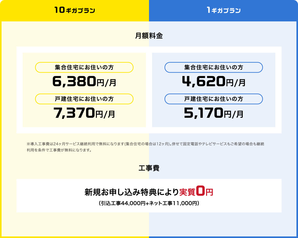 ※ 導入工事費は24ヶ月継続利用で無料になります。