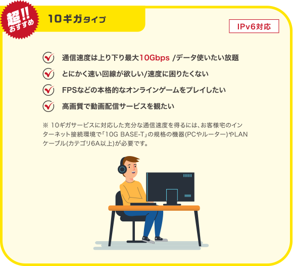 ※ インターネットの速度は、最低保証ではありません(ベスト・エフォート)。実速度は、お使いのコンピューターの性能やネットワーク環境、回線の混雑状況によって左右されます。