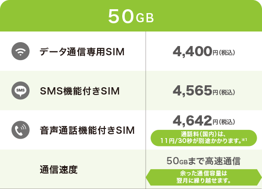 | 注意事項 | ※通話定額オプションは、お申し込み後キャンセルができません。 ※新規で通話定額オプションをお申し込みされたお客様はお申し込みされた日からご利用いただけます。利用中の通話定額オプションを変更されたお客様は、お申し込みした翌月1日よりご利用いただけます。 ※通話定額オプションの利用料金は利用開始月から満額発生します。 ※通話定額オプションを解約される場合、解約申し込み日にかかわらず月末解約となり、料金は満額発生します。 ※一般的な利用を逸脱したものと想定される通話(長時間にわたる通話等)は、当社の判断のもとに切断する場合があります。 ※対象の音声通話機能付きSIM カードが、ご利用開始日前である場合やご解約予定がある場合などは、音声オプションの変更申し込みができません。ご利用開始日以降に、変更・解約予定などがない状態でお申し込みください。 |